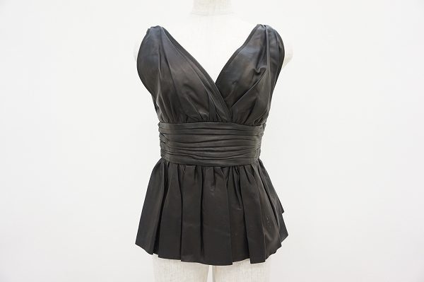 こちらのレザーノースリーブは全体的にギャザーが入っているため、フェミニンな印象でとても女性らしいシルエットとなっており、普段着はもちろん、合わせ方次第でパーティーやお食事会などにも着て頂けます。