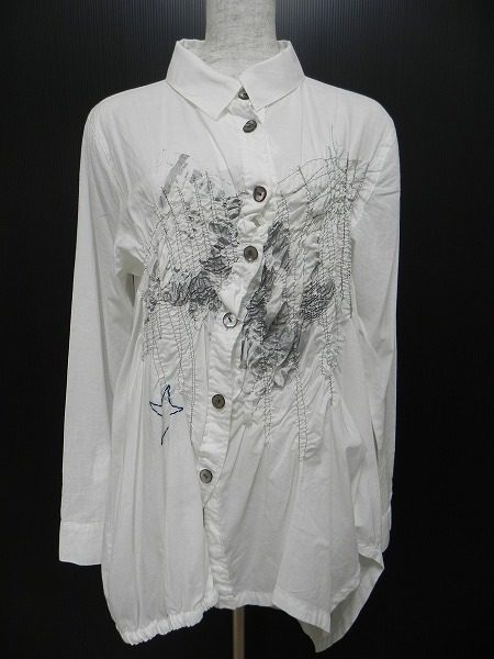 こちらのシャツも非常にモード色の強い一品となっています。白のコットンシャツを隅々までカスタムしました。