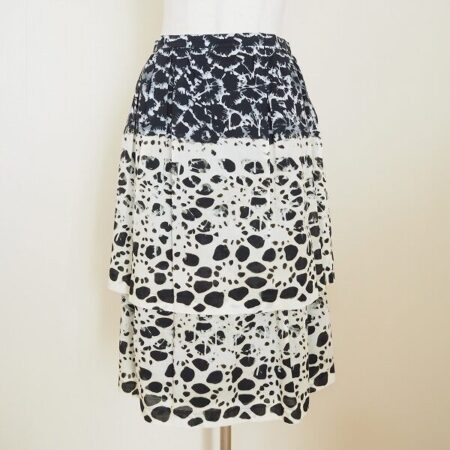 ジュンアシダのスカートを出張買取ご利用のお客様より買取しました。黒と白のバランスが丁度よく綺麗に仕上がる1枚。どこか楽しませてくれる要素もあり、いろいろなところで使っていただけます。シンプルなトップスにも気軽に合わせていただいてもよいですね。
