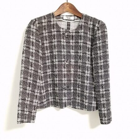 9号サイズのマダムジョコンダのジャケットを買取しました。チェックながらもさりげなく柔らかくて上品にまとめてくれます。