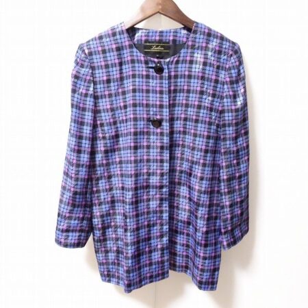 出張買取にてレリアンのジャケットを買取しました。紫と青、黒が綺麗なジャケット。濃すぎないチェックで爽やかな印象にしてくれます。白や黒の無地のお洋服にオンしても素敵ですよね。