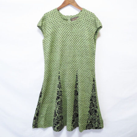 斉藤都世子のワンピースを出張買取ご利用のお客様より買取しました。明るい緑にドットが映えるワンピース。フリル部分のお花も可愛らしいのが印象的です。カーディガンやボレロと組み合わせるのも楽しくなりそうです。