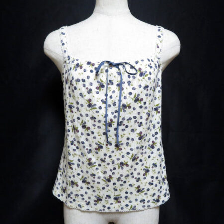 珍しいブルーベリー柄についつい目がいってしまうキャミソール。人気ブランド、ピンクハウスのお品です。出張買取しました。小柄なので細やかで涼しげなイメージも作り上げてくれます。