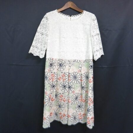出張買取にてローズティアラのワンピースを買取しました。白とベージュ部分のコラボレーションが可愛いですね。スッキリも決められます。春夏に使用場合は羽織物を加えると色々な着方が楽しめますね。