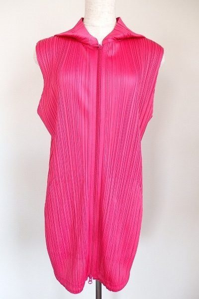 フォーマルな印象のアイテムが多いプリーツプリーズのアイテムの中ではレアな、パーカーを買取いたしました。レイヤードしやすいノースリーブですので、着る人のアイデア次第で、スタイリングを楽しむことが可能です。