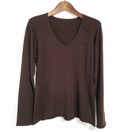 出張買取にてヨーガンレールのセーターを買取しました。サイズはMです。濃いめブラウンがかっこよくもあり上品でもある1着。セーターといっても分厚過ぎないのでカジュアル感も少なく着ていただけます。