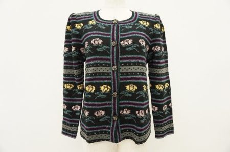 今回のお洋服は、昭和レトロな雰囲気が魅力のバラ柄ニットカーディガン。