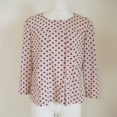 出張買取でレリアンのカットソーを買取しました。柔らかいピンクにバランスのいいドットをのせたカットソー。女性ならではの可愛らしさを出しつつもレリアンの特徴ともいえる品ある雰囲気を大切にした1枚です。