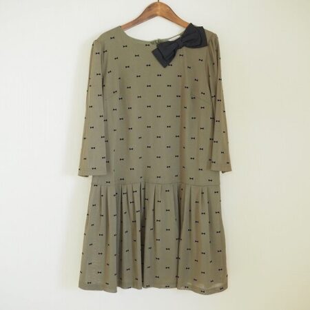関西ご在住のお客様よりローズティアラのワンピースを買取しました。ご利用方法は出張買取です。フェミニン系のお洋服が大好きで他にもフォクシーやレジーナロマンティコなどのお洋服もお売りいただきました。落ち着いたカーキとリボンの組み合わせが何とも言えない可愛さです。