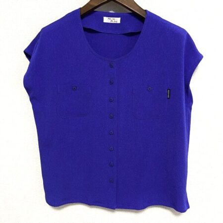 出張買取において三年坂のブラウスを買取させていただきました。パキッと明るい青色が全体的に締まりをくれます。ボタンもたくさんで楽しめる1着になりますね。