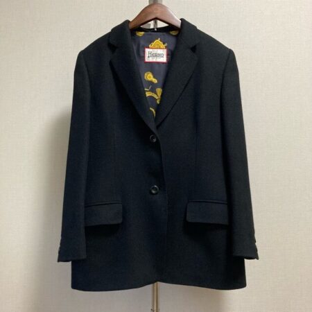 出張買取にてヘルノのジャケットを買取しました。サイズは44です。シルクとカシミヤを使用しており、全体的に質の高さがうかがえるジャケットではないでしょうか。ピリッと決めたいという方にもぴったりです。