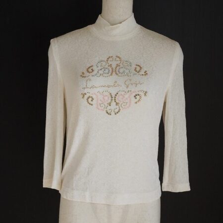 伊太利屋のカットソーを出張買取ご利用のお客様より買取しました。キュートなラインストーンが適度に煌めいて輝きをアップさせてくれます。ラフなお洋服を着つつキラキラ感を加えたい方にぴったりです。