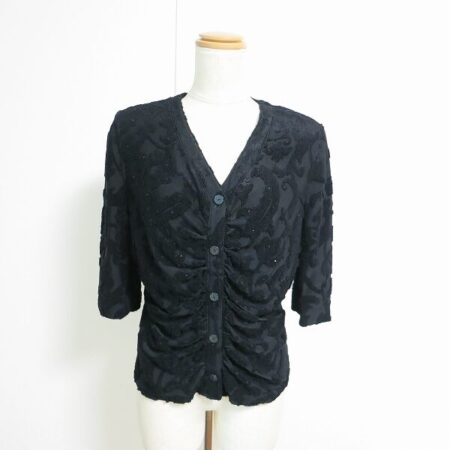 人気ブランド・伊太利屋のジャケットをお客様より買取しました。七分袖でノーカラー、スッキリとしたかっこよさを演出。そして色合いも黒に総柄ですが目立ちすぎずさらりと着ていただけます。シンプルシャツを合わせていてもしっかり決まる1点です。