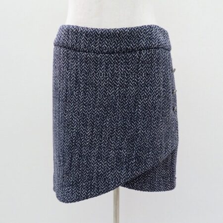 やわらかみのあるグレーとネイビーがポイントのスカートを出張買取ご利用のお客様より買取しました。イタリア製、サイズは38です。カッティングもスリムで余裕ある感じが素敵です。状態のいい美品のスカートというのもポイントですね。