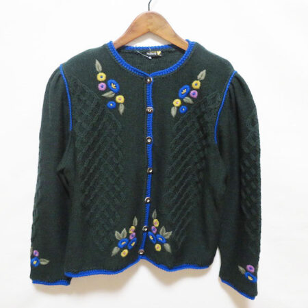 マックデイビッドのカーディガンを買取しました。買取方法は出張買取です。寒色を使いつつもどこか鮮やかで上級な風合いを表現できる1枚。どんなボトムスにも選びやすいタイプのカーディガンではないでしょうか。