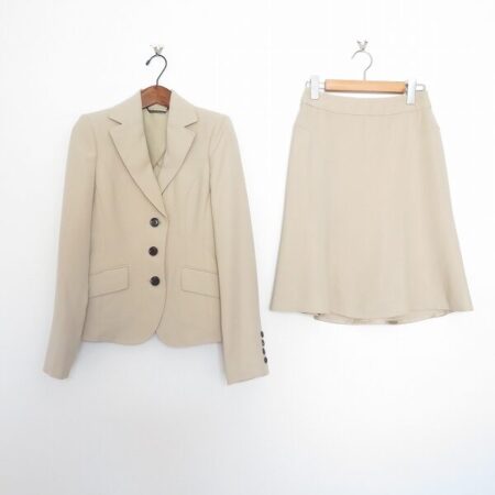 九州地方にお住まいのお客様より出張買取でバーバリーのスカートスーツを買取しました。ベージュの柔らかさ、繊細なデザインが息をのむ1点。セットアップなので別々にも使えて便利でしかない1着です。