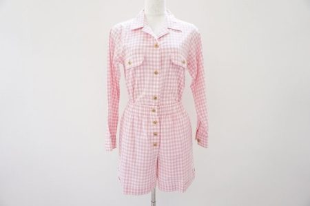 ピンクと白のギンガムチェックで非常にフェミニンな雰囲気のセットアップ。
