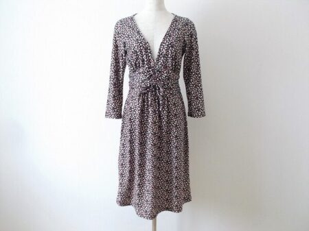 フィフィーユパリのワンピースを出張買取ご利用のお客様より買取しました。豪華な絵柄があるわけではないのにどこか華やかさを感じるワンピースです。首元は大胆に開き、ウエストはキュッと締まる女性には気分が上がるデザイン。ネックレスも楽しんでいただけます。