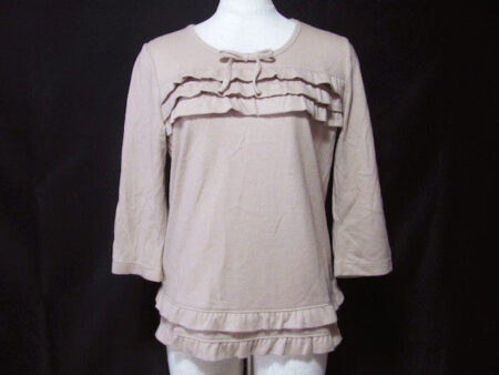 華美過ぎず地味すぎないフリル使いがポイントのカットソー。インゲボルグのアイテムです。出張買取ご利用のお客様より買取しました。くすみピンクなのでカラフル過ぎるピンクが苦手な方にもご利用いただけます。ちょっとした時にも使っていただける便利なカットソーです。