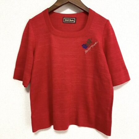 出張買取にて斉藤都世子のカットソーを買取しました。赤色のキュートな雰囲気とカジュアルなデザインが見事にマッチしたお洋服。チェックや花柄などのはっきりした柄にもしっかり合わせていただけます。