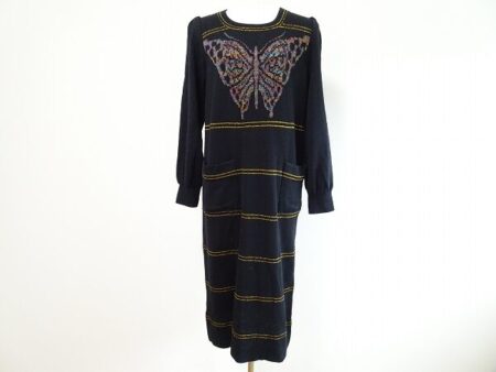 アクイールで人気を誇るニットブランド・サイトウトヨコ。今回は、ボーダー&蝶柄の長袖ワンピースをお譲りいただきました。細身ボーダーなので幼くカジュアルになり過ぎず大人の装いに!胸元には大きな蝶柄はコーディネートの主役にもなってくれるので1枚でもコーデがお洒落になります。この冬に重宝しそうな素敵なワンピースですので是非ワードローブに追加してみて下さいね。