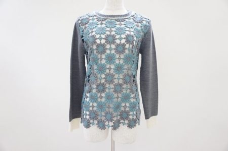 花の刺繍が存在感ありながら可愛らしく、オリジナリティのあるユニークなニットです。