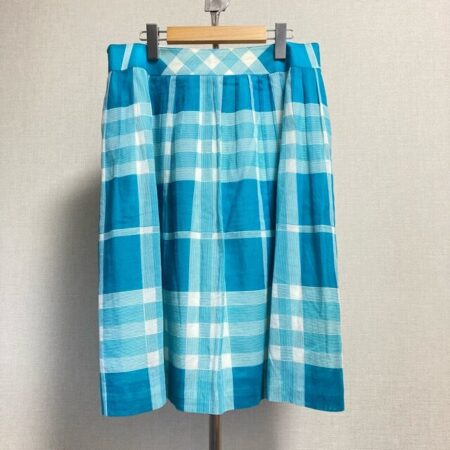出張買取ご利用のお客様よりバーバリーのスカートを買取しました。青と白のチェックが綺麗で眺める時間が長いほど元気が出そうです。プリーツも適度に入っているため上品さも出していただけます。