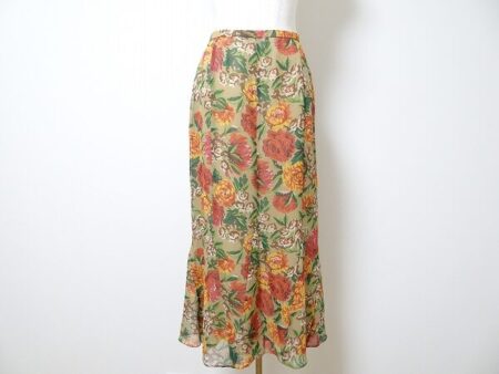 クラシカルな花柄が高貴さを出してくれるユキトリイのスカート。地方にお住まいのお客様より宅配買取にて買取しました。シックさが際立つスカート、裾部分もほどよく広がり動くたびに綺麗に揺れます。長めの丈は品のある女性を作り上げてくれる注目ポイント。ハードなライダースジャケットからベロアのトップスまで組み合わせは無限大のスカートではないでしょうか。