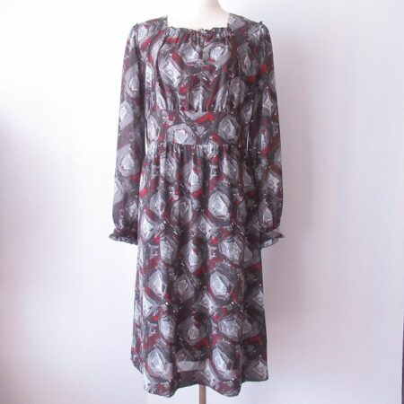 大人な女性に人気のブランド、レリアンのワンピース。11号のアイテムを出張買取にて買取しました。アクセントの強い柄ですが優雅な雰囲気のデザインとのバランスがよく綺麗にしっとり仕上がります。アクセサリーなどを付けずとも豪華に着ていただけます。
