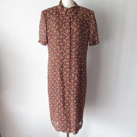 出張買取でレリアンのワンピースを買取しました。茶色にオレンジのドットという珍しい組み合わせです。可愛らしくもあり、どこかあっさりした感じもあるので気兼ねなくおしゃれを楽しめるかと思います。