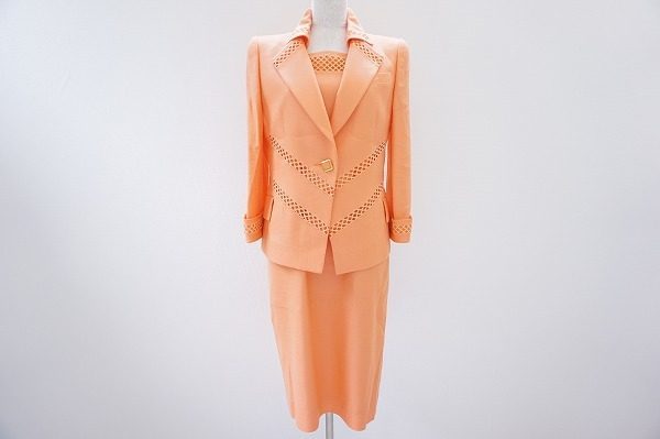 華やかなビタミンカラーが大人の女性の可愛らしさを演出。ベラのワンピーススーツ。