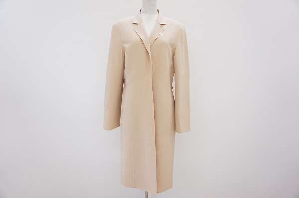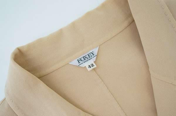 今回、こちらでご紹介させていただきますのは、フォクシーのコートになります。ベージュの落ち着いたお色味となっておりますので、年代問わずにお召しいただけます。