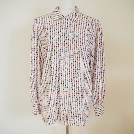 ハナエモリのブラウスを出張買取ご利用のお客様より買取しました。カラフルなんだけれど、鮮やかすぎずさわやかさもあります。ちょっと気軽に色を楽しみたい時に選んでいただきたい1枚です。