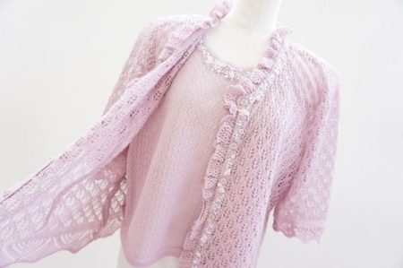 こちらのアンサンブルも細やかな編みが美しく、上品な透け感が品のある女性らしさを引き出します。