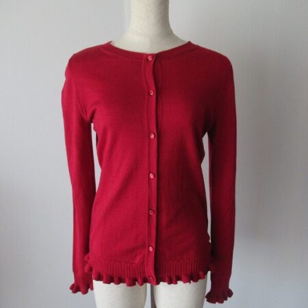 出張買取にてエスカーダのカーディガンを買取しました。女性にとってはいろいろな嬉しいカラー効果もある赤。ただ鮮やかなだけではなくきれいなデザインもテンションを上げてくれるポイントではないでしょうか。細かい部分のフリルもキュンとさせてくれます。