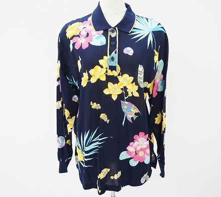 世界で最も美しいプリントと称され、世界中の女性たちから世代を超えて愛され続けているレオナール。職人の熟練した手作業により、何枚も色が重ねられ、繊細なグラデーションを表現した高度なシルクスクリーンプリント。大人の女性でも着やすい落ち着いた紺ベースに可愛らしい魚たち。シンプルなフォルムですがカジュアルになり過ぎる事無いよう華やかなプリントで上品にまとめられた素敵なポロシャツです。