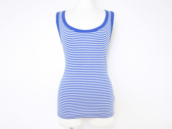 今回、こちらでご紹介させていただくのは、アニエスベーのボーダーのタンクトップになります。元気いっぱいな雰囲気が可愛らしい1枚です。ボトムスには、白いパンツやジーンズ、タイトスカートなど、何でも合わせやすいので、コーディネートの幅も自然と広がります。