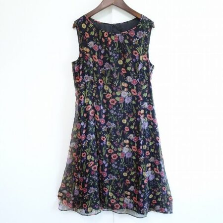 出張買取でエルミダのワンピースを買取しました。上品なお花が美しく咲いている1点。黒ベースで派手過ぎないちょうどいい鮮やかさを主張できるワンピースかと思います。ボレロやシースルーのストールなどを合わせても素敵です。