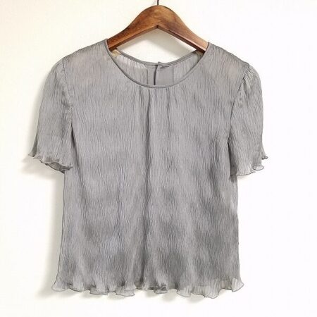 出張買取でジュンアシダのブラウスを買取しました。フリーサイズです。柔らかいグレーカラー。シースルー素材ですのでさらにソフトな印象を加えてくれます。