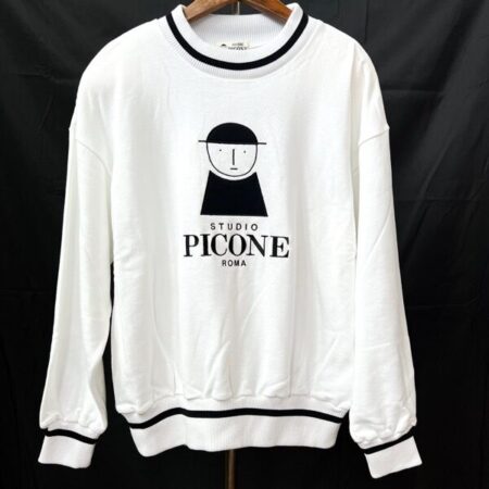出張買取でピッコーネのトレーナーを買取しました。サイズは38です。白のさわやかさに不思議なキャラクターがよく合うトレーナー。カジュアルながらもどこか締まる1点です。