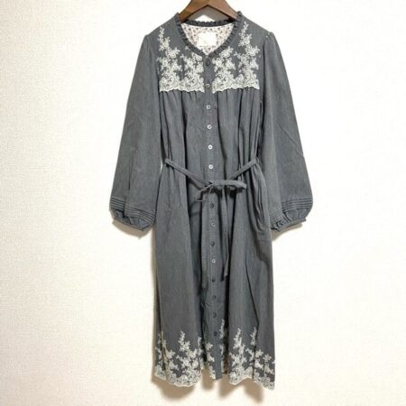ピンクハウスのワンピースを買取しました。買取方法は出張買取です。濃いグレーながらも袖口を丸みにするなど可愛らしさの工夫にぬかりがないのがピンクハウス。首周りや裾の刺繍もどこかエレガントにしてくれます。ベルト付きで締まるのもポイント高しです。
