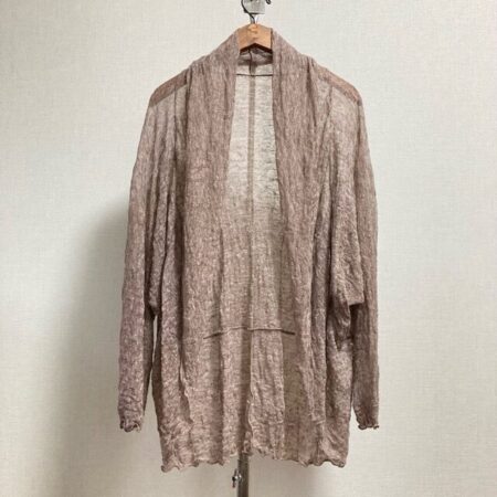 出張買取にてヨーガンレールのカーディガンを買取しました。サイズはMです。麻素材の柔らかさがうまくでた1点。柄、ロゴのカットソーの上からも気軽に羽織れてしまえるありがたいカーディガンです。