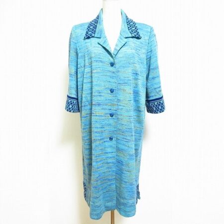 品よく明るくも仕上げてくれる水色が素敵なコート。斉藤都世子のお品です。襟もありきっちりしたマダム感が演出できます。袖も短めなので圧も少なく、綺麗なお色が楽しんでいただけるかと思います。