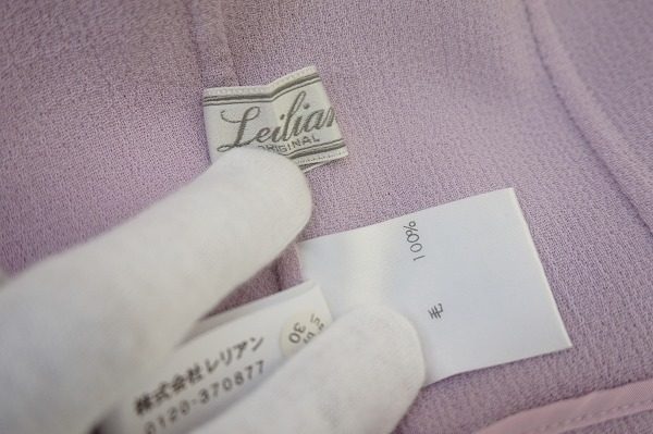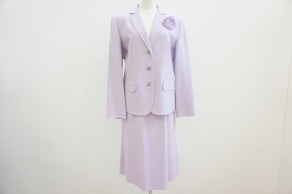 こちらのスカートスーツは、やさしい色味の紫がとても上品で、着る人に気品あふれる印象を与えてくれます。