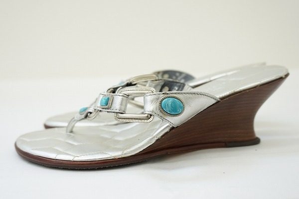 明るい色のコーディネートが思わず増えてしまう夏には、このシルバーが足元で良いアクセントになってくれそうです。ヒール部分の木目とシルバーの組み合わせは、リゾートの開放感にも合いそうですね。