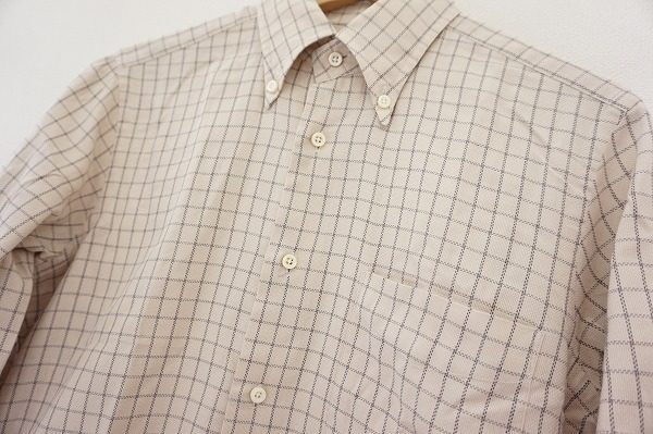 今回ご紹介するのは、非常に抜け感のあるチェックシャツです。襟のところはボタンダウンの仕様となっており、生地のテロっとした風合いにとてもよくマッチしています。シャツ全体に広がるチェック柄は、大人の上品な佇まいを演出するのに一役買っています。