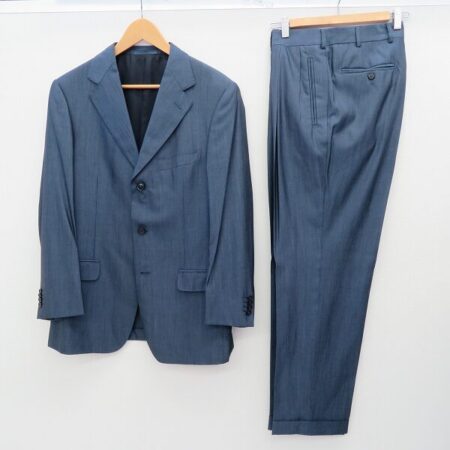 出張買取にてエルメネジルドゼニアのシングルスーツを買取しました。シルク混で肌ざわりにも期待ができるスーツです。紺色の濃さもさわやかであっさり着られるかと思います。