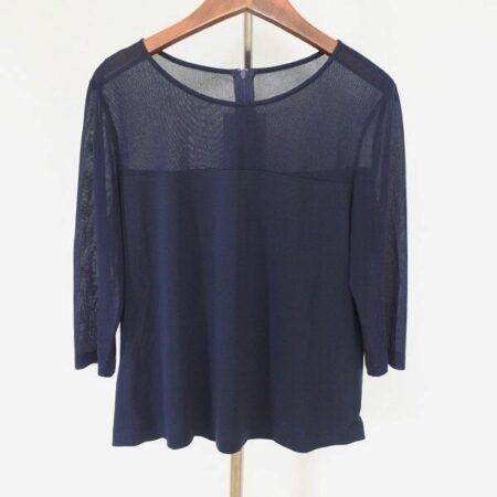 出張買取にてレオナールのカットソーを買取しました。Lサイズです。濃いめの紺色ですが透け感と切り替えのバランスがよく軽さを尊重して着ていただけます。お花柄やドット柄を合わせるのにも最適です。