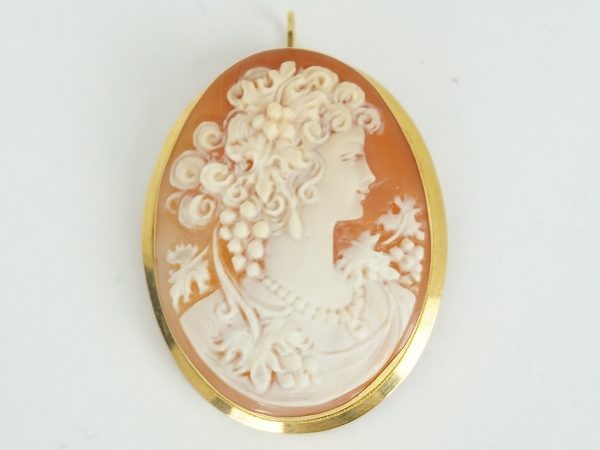 カメオの良し悪しは、女性モチーフの場合、髪の毛の繊細さで見られることが多いですが、こちらのアイテムではなかなか品よく仕上がっているように見受けられます。