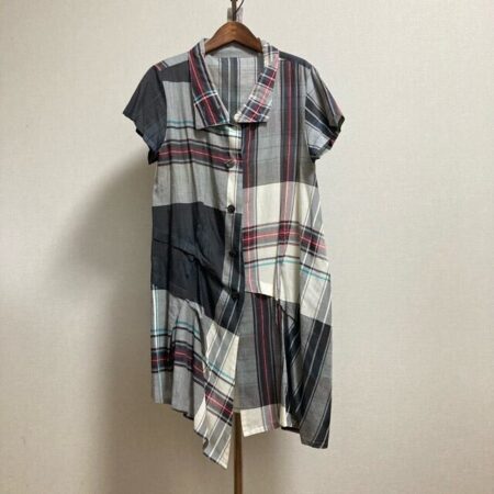 出張買取において慈雨センソユニコのワンピースを買取しました。サイズは40です。慈雨センソユニコならではの不思議な形のデザインが個性を生み出してくれます。チェックも派手過ぎずおしゃれで可愛らしく決めていただけるのがいいですね。